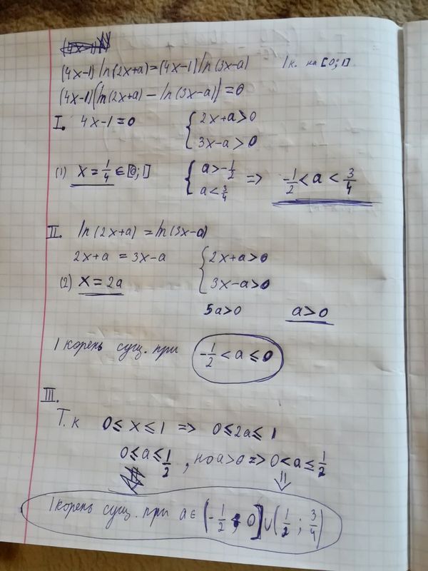 (4x–1)·(ln(2x+a)–ln(3x-a))=0;