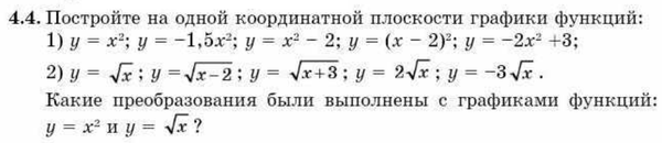 Постройте на одной координатной плоскости графики функций: Какие преобразования были выполнены с графиками функций:
