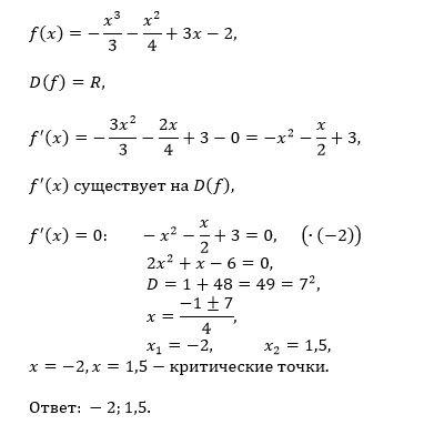 ПОМОГИТЕ ПОЖАЛУЙСТА С ПОДРОБНЫМ РЕШЕНИЕМ 1. Дана функция f(x)=-х^3/3-х^2/4+3х-2 Найдите ее критические точки