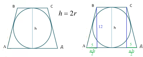 кол вписан у рівнобічну трапецію ⇒ BC+AD=AB+CD