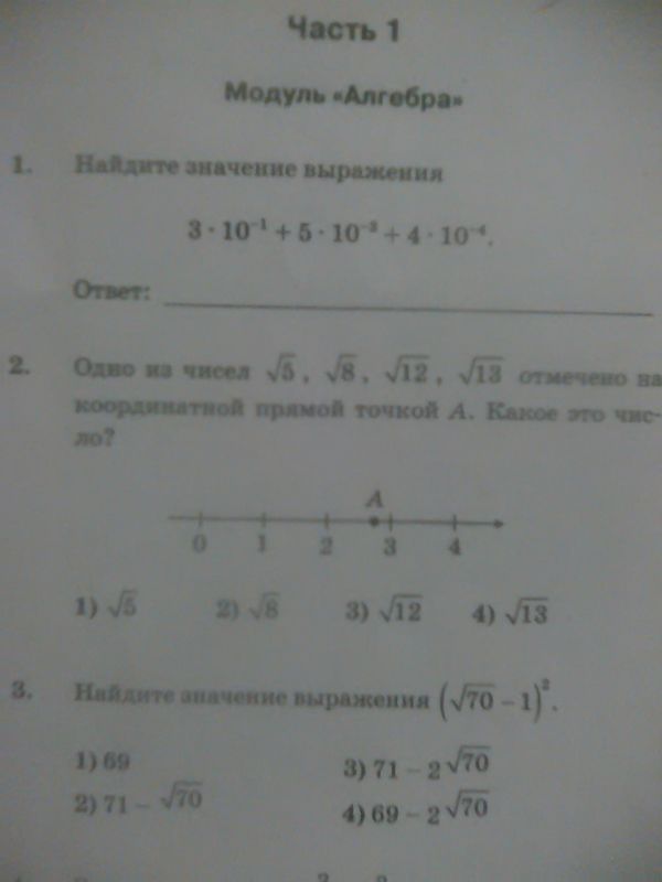 Найдите значение выражения 1) 3*10^(-1)+5*10^(-3)+4*10^(-4) 2) (sqrt(70)-1)^2