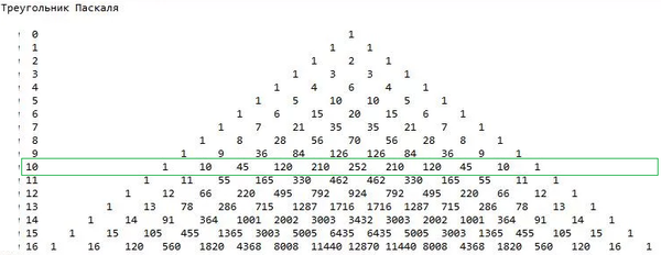 или находим их готовые значения в треугольнике Паскаля, см. приложение