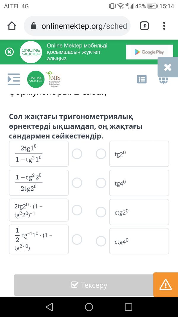 ctg 2α =1/tg2 α