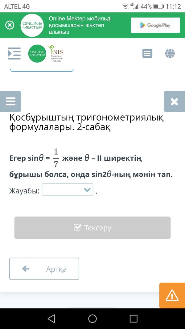 sin2 θ =2sin θ *cos θ =2*(1/7)*(-sqrt(48))/7=-2sqrt(48)/49=[b]-8sqrt(3)/49[/b]
