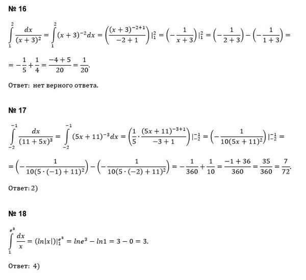 17. Определенный интеграл от -2 до -1 (dx / (11 + 5x)^3) равен ...
