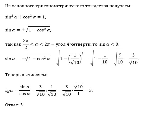 5 Найдите tg α, если cos α = 1 / √10 и α = (3π / 2; 2π)