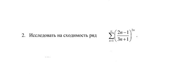 2. Исследовать на сходимость ряд ∑ ((2n-1) / (3n+1))^2n n=1 до ∞.
