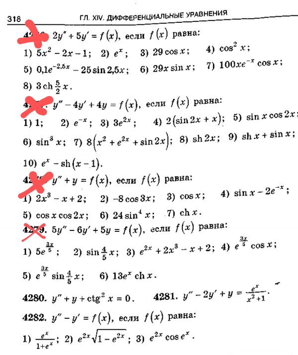Линейные дифференциальные однородные уравнения второго порядка. Решите 4 примера из номеров 4268-4282, кроме номеров 4275-4279.