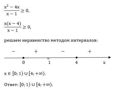 Решить неравенство (x^2-4x)/(x-1) ≥ 0