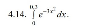 [m]∫_{0}^{0,3} e^{-3x^2}dx= ∫_{0}^{0,3} (1-3x^2+\frac{9x^4}{2!}-\frac{27x^6}{3!}+... +\frac{(-3)^{n}x^{2n}}{n!}+...)dx=[/m]