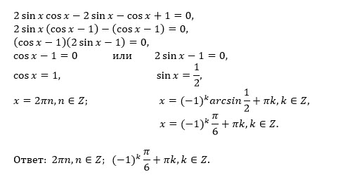 2sin x cos x - 2 sin x -cos x + 1=0...