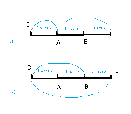 1Отрезок DK разделён точками А и В на конгруэнтные отрезки. Найдите: AD/AE ,DB/DE