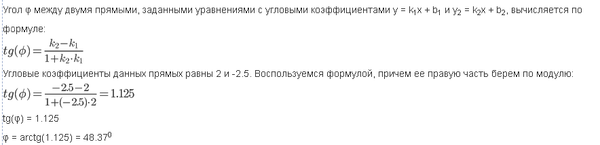 4. Определить острый угол, под которым пересекаются прямые АВ и СD, если А (2; 4), В (4; 8), С (8; 3) и D (10; -2).