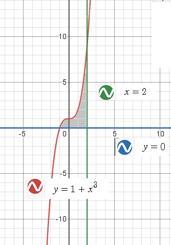 вычислить площадь фигуры ограниченной линиями y=1+x^3, y=0, x=2