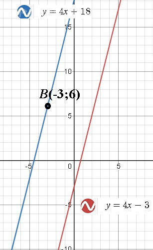 складіть рівняння прямої яка проходить через точку в(-3 ; 6)і паралельна прямій у=4х-3