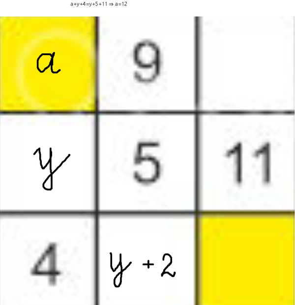 В каждую клетку вписывается число (не обязательно целое) так, что сумма чисел любой строки и любого столбца принимают одно и тоже значение. В части клеток числа уже стоят. Найдите сумму чисел, которые будут вписаны в закрашенные клетки.