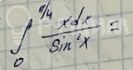 [m]∫_{0}^{\frac{π}{4}} \frac{xdx}{sin^2x}=(x\cdot (-ctgx))|_{0}^{\frac{π}{4}} - ∫ _{0}^{\frac{π}{4}} (-ctgx)dx=[/m]