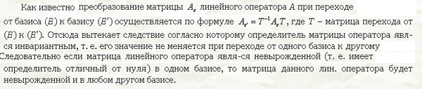 Пусть оператор в некотором базисе задан невырожденной матрицей. Может ли в другом базисе матрица этого оператора быть вырожденной?