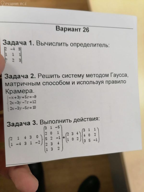 Задача 2. Решить систему методом Гаусса, матричным способом и используя правило Крамера.