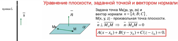 Для плоскости, перпендикулярной прямой L, этот вектор становится нормальным вектором плоскости