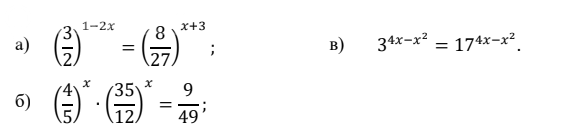 b) (4/5)^x * (35/12)^x = 9/49 ;