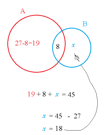 A=27 , A ∪ B=45, A∩B = 8 , B=?