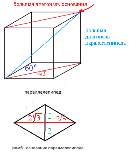 присми, якщо її більша діагональ утворює з основою кут 60 °.
