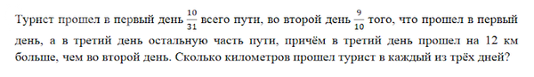 [m]\frac{12}{31}[/m] больше [m]\frac{9}{31}[/m] на 12 км