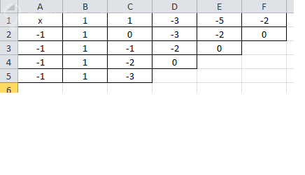 В строке 1 написаны коэффициенты при степенях x.