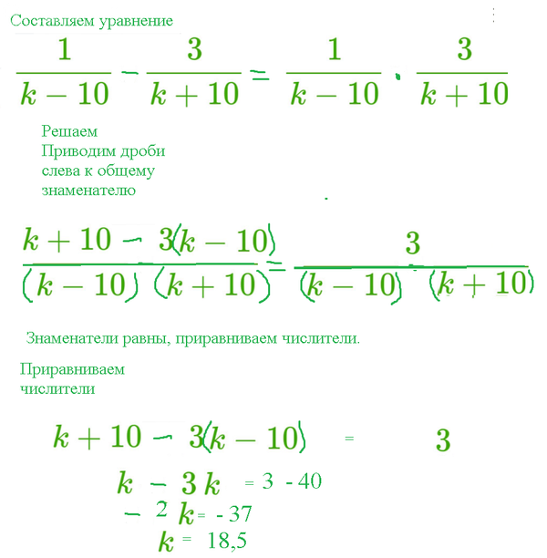 Найди значение перемено k,при котором разность дробей равна их произведению