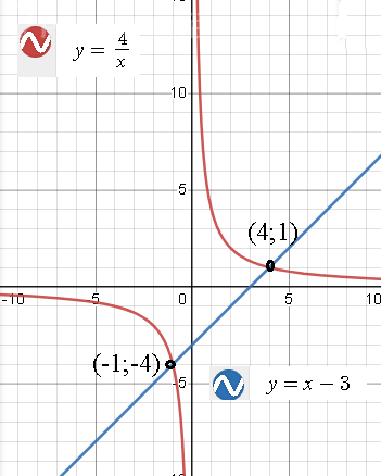 Постройте графики заданных функций и найдите координаты точек пересечения данных графиков: у=4/х и у=х-3.