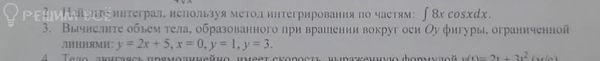 3.Вычислите объем тела образованного при вращении вокруг оси Oy фигуры, ограниченной линиями: y=2x+5, x=0, y=1, y=3