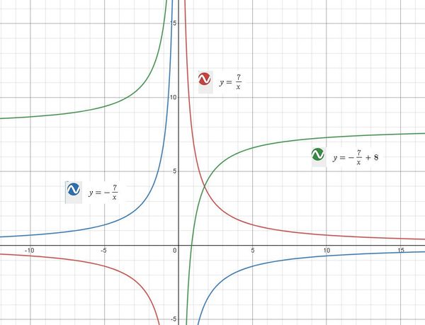 y=-(7/x) + 8 параллельный перенос y=-7/x на 8 единиц вверх