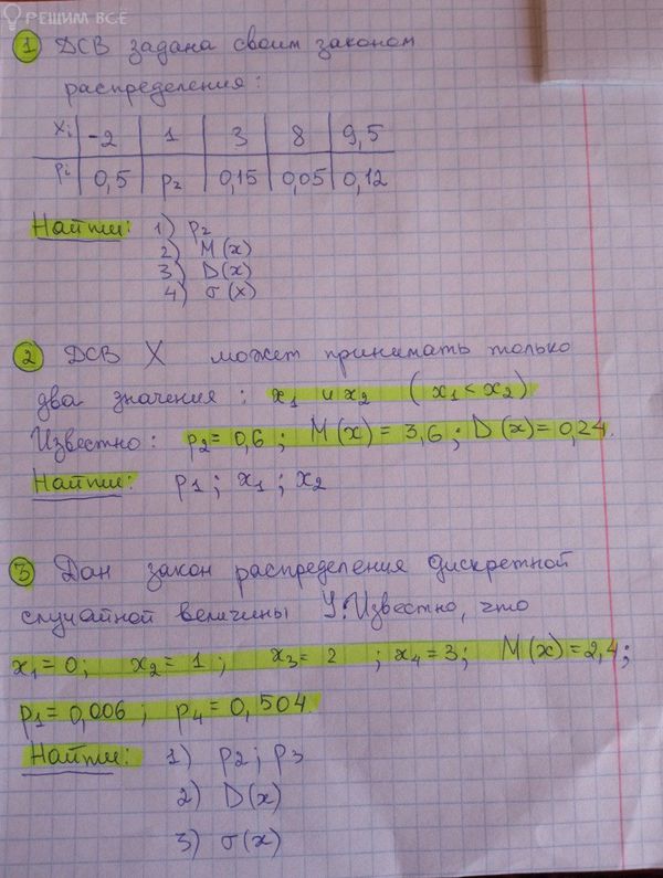 [b]Ответ: p1 = 0,4; x1 = 3; x2 = 4[/b]