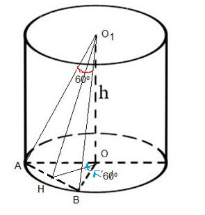 Хорда АВ видна из центра верхнего основания под углом 60°.