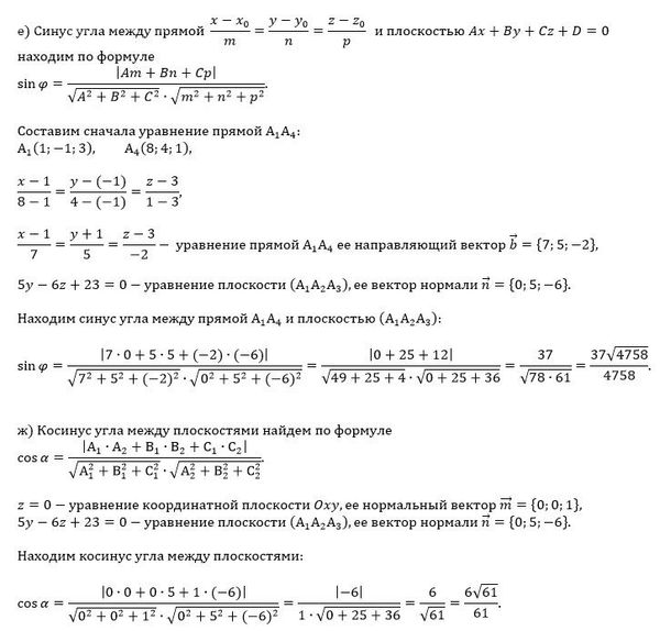 Ж) косинус угла между координатной плоскость Оху и плоскостью А1А2А3