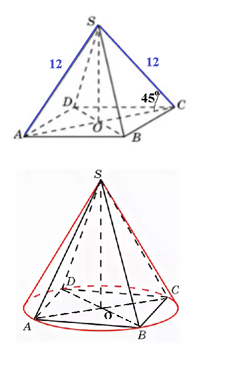 1) Δ SAC - равнобедренный (SA=SB=12; ∠SCA=45 °,значит ∠SCB=45 ° и тогда ∠ ASB=90 ° ) 2) S_(осев сеч конуса)=S_ ( прямоуг треуг SAC)=(1/2)SA*SB=(1/2)*12*12=[b]72 [/b]