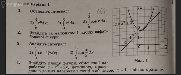 1)[m] ∫ _{0}^{2}x^3dx=(\frac{x^4}{4})|_{0}^{2}=\frac{2^4}{4}-\frac{0^4}{4}=4[/m]