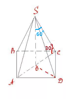 Боковое ребро правильной четырехугольной пирамиды равно 6см и образует угол 60° с высотой пирамиды. Найдите площадь осевого сечения конуса, описанного вокруг этой пирамиды