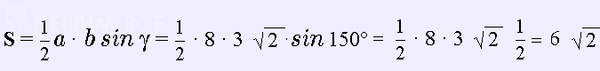 Найдите площадь треугольника, две стороны которого равны 8 см и 3√2 см, а угол между ними равен 150°.