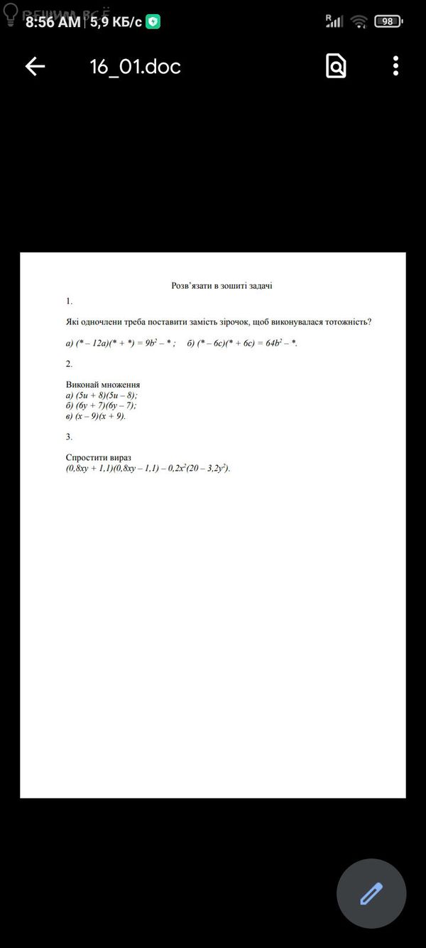[m](0,8xy+1,1)(0,8xy-1,1)-0,2x^2(20-3,2y^2)=(0,8xy)^2-1,2^2-0,2x^2\cdot 20+0,2x^2\cdot 3,2y^2=[/m]