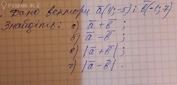 vector{a}+vector{b}=(4+(-1);-5+7)=(3;2)