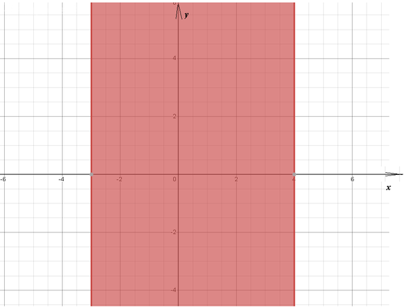 Множество точек, внутри полосы, ограниченной прямыми x=-3; x=4