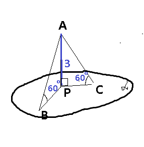 З точки А до площини α проведено похилі АВ і АС. Знайдіть відстань між точками В і С, якщо відстань від точки А до площини α дорівнює 3см, а похилі АВ і АС утворюють з площиною α кути по 60°.