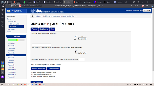 [m] ∫_{2} ^{ ∞ }\frac{dx}{(5x)ln^2(7x)}=-\frac{1}{5ln7x}|_{2} ^{ ∞ }=\frac{1}{5ln14}<1[/m]