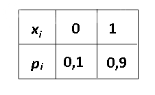 Проводят один опыт, в результате которого событие А может произойти с вероятностью 0,9. Рассматривают случайную величину Х- количество появлений события А в данном опыте. Найдите: 1) закон распределения случайной величины Х. 2) Математическое ожидание случайной величины Х