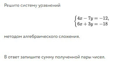 [m]\left\{\begin {matrix}4x-7y=-12\\14x+7y=-42\end {matrix}\right.[/m]