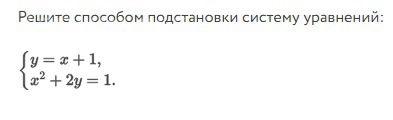 Решите способом подстановки систему уравнений: { y = x+1 { x^2 + 2y = 1