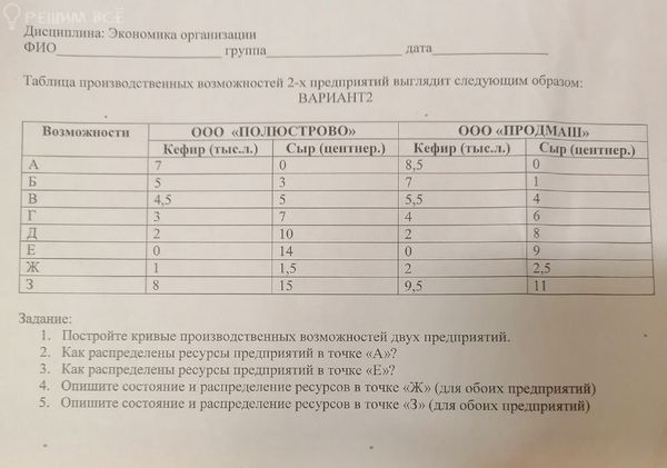 Необходимо построить график производственных возможностей, решив все 5 заданий. Спасибо