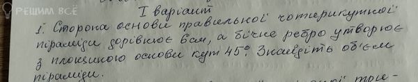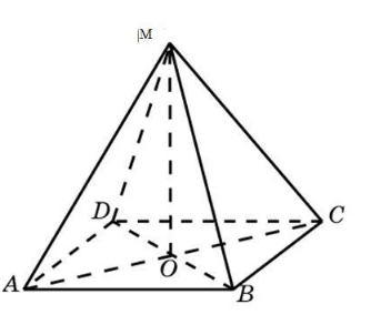 В основании пирамиды квадрата AC^2=6^2+6^2=36+36=2*36 AC=6sqrt(2) ОС=3sqrt(2) Δ MOC - прямоугольный равнобедренный MO=OC=3sqrt(2) V=(1/3)S_(осн)*H S_(осн)=S_(квадрата)=6^2=36 Н=МО=3sqrt(2) V=(1/3)*36*3sqrt(2)=36sqrt(2)